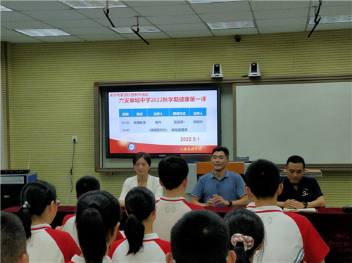 2022年9月1日下午,六安皋城中学在多媒体教室举办秋学期“健康第一课”专题讲座。讲座由六安市卫健委安排,三里桥卫生服务中心医师、六安皋城中学健康副校长陶冉主讲,现场为30多位孩子授课,并同步向各班级教室直播,全校师生共同在“云端”认真聆听了一场精彩的线上讲座。
