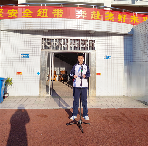 初二刘学臣、杨传斌同学进行国旗下讲话。他们告诉我们唯有系紧安全的纽带,人生的篇章才能书写出无限可能。从校园到家庭,从网络安全到心理健康,每一条安全准则都是对生命的郑重承诺。