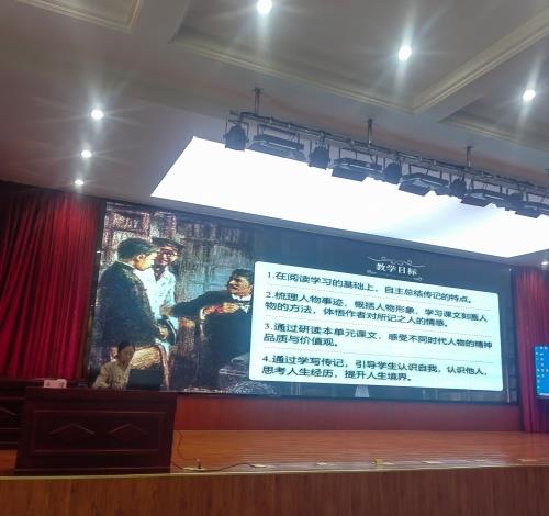 培训会上,华东师范大学附属六安学校的刘锐老师率先开讲。他以“八年级上册阅读教学教材修订及实施建议”为主题,从修订背景、核心变化及教学实施路径三方面进行解读,为教师们厘清了阅读教学的重点与方向。随后,舒城第二中学的胡军老师围绕作文教学,以“明晰文体,创设情境,对标训练”为核心,结合实例分享八年级上册作文教学的具体实施策略,为提升学生写作能力提供实用参考。