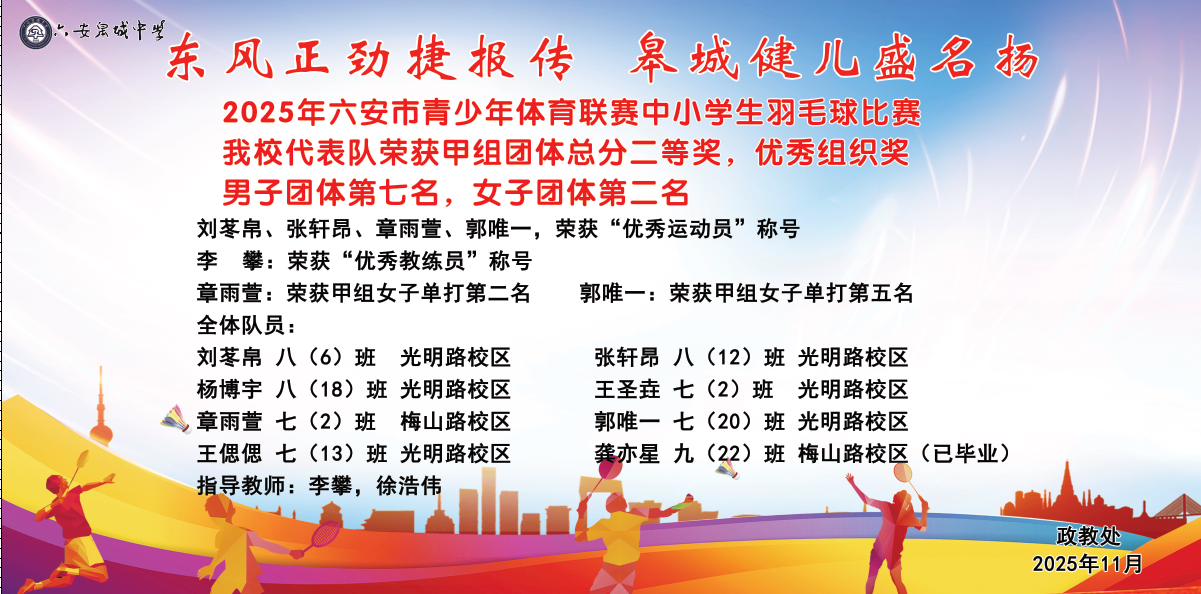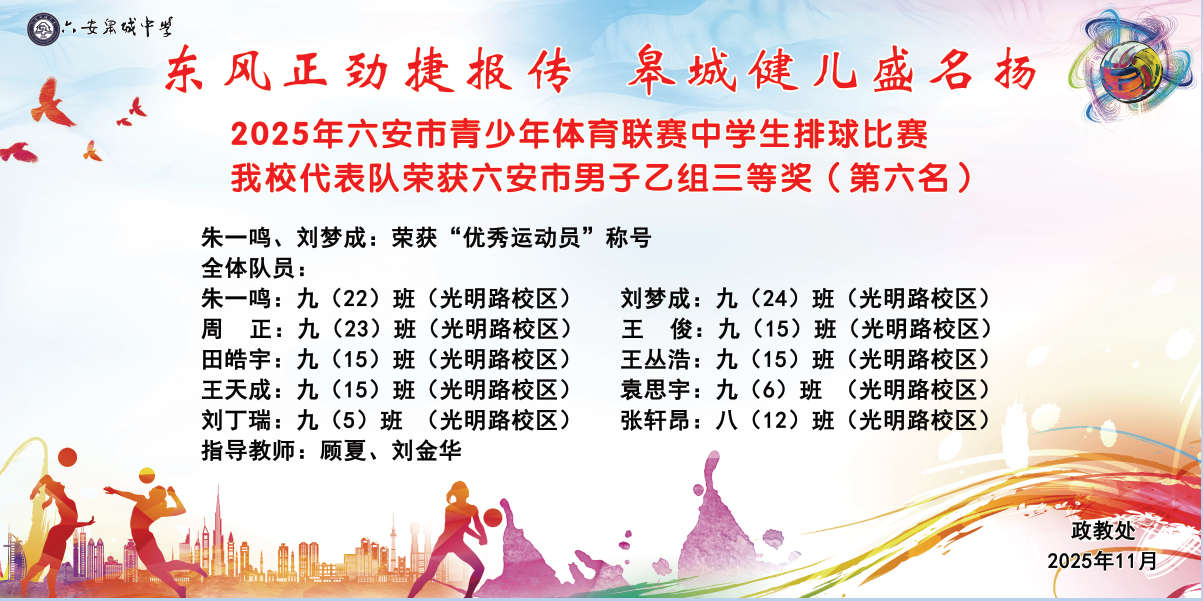 2025年六安市青少年体育联赛中学生排球比赛、羽毛球比赛、乒乓球比赛获奖名单
