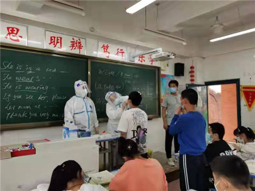 5月13日、17日、22日3次核算检测期间,医疗队队员为全校师生进行核算检测。近日气温升高,看着医务人员身着防护服,大汗淋漓还在一丝不苟进行采集的身影,广大师生感动不已。各班级同学在班主任带领下纷纷采取不同方式向他们表示感谢。这其中也涌现出不少感人画面。一些现场拍摄的视频上传至互联网后,引来数百万网友观看,大家纷纷留言:“六安加油,白衣天使辛苦了,孩子们太棒了”,“优秀的学校必培养未来的国之栋梁”,“中华美德代代相传,为孩子们点赞”等振奋人心的话语。这既是对学生们的肯定,又是对学校德育教育工作的褒奖。